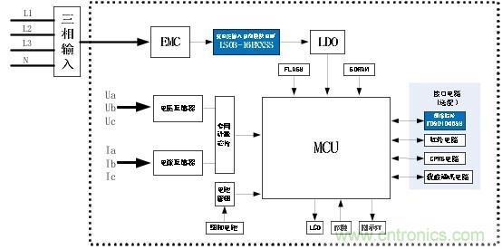 微功率三相四線制電力專用電源LS03-16BxxSS或LD03-16BxxSS系列能夠解決工頻變壓器的體積大、設計復雜、輸入電壓高等問題。下面為三相智能電表的電源解決方案。