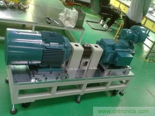 那針對電動汽車電機試驗這種情況,目前比較好的方案就是用高速異步電機的加載方案,用本身同樣恒功率范圍寬、峰值轉速高的電機作為加載負載。這種方案可以根據用戶的具體測試范圍,定制不同的測功機專用電機作為測試負載,保證機械負載的加載范圍覆蓋被測電機。
