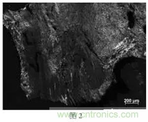 圖2對(duì)應(yīng)原料b的偏光照片,結(jié)果顯示原料b以鑲嵌型光學(xué)結(jié)構(gòu)為主,取向性較好;
