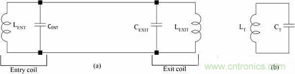 圖2:饋電線圈的理想電路圖(a)及其等效電路(b)。