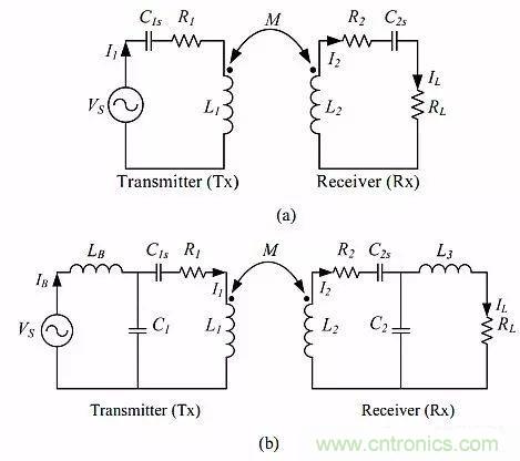 圖1:無(wú)線輸電(WPT)設(shè)計(jì)中所用補(bǔ)償電路拓?fù)溆兴姆N,這里是其中兩種:(a)SS拓?fù)洌╞)LCL-LCL拓?fù)洹?/p>