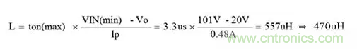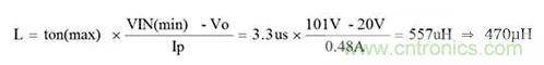 首先計算電感值。設VIN為101V。假設90VAC條件下,峰值電壓為1.41倍,余量為20%。