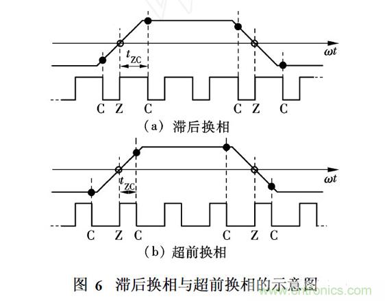 式中, TZZ ( k - 1)為第k - 1次過零點(diǎn)到第k次過零點(diǎn)的時(shí)間; tZC ( k)為第k次過零點(diǎn)到第k次換相點(diǎn)的延遲時(shí)間.