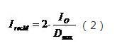 在大多數情況下,反激式開關電源的輸出整流器的最大導通占空比約為0.5。這樣,流過輸出整流器的電流峰值與輸出平均值電流之間的關系為: