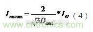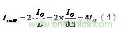 (3)流過整流器的有效值電流與平均值電流的關系: