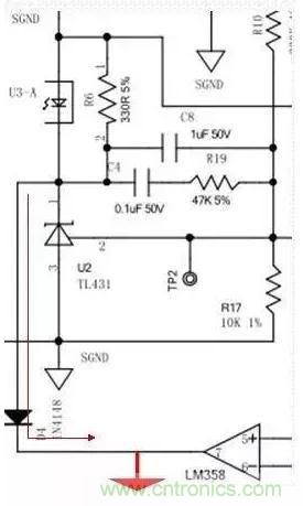 C8、C4、R19組成了431所需的回收回路補償,以便穩定控制回路。