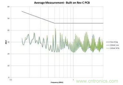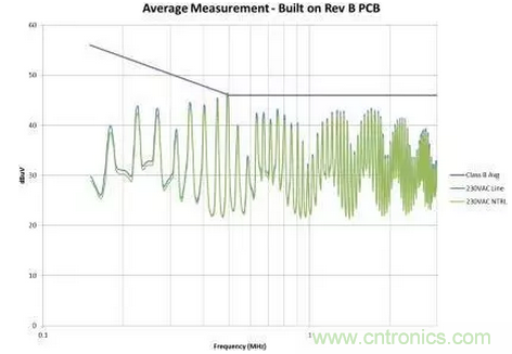 圖4是修改后的效果圖。我們在故障點位置為EMI規(guī)范獲得了大約6dB的裕量。此外,我們還顯著減少了總體EMI簽名。所有這些改善都僅僅是因為布局的調(diào)整,并未改變電路。如果您的電路具有高電壓開關(guān)并使用了屏蔽距離,您需要非常小心地對其進行控制。