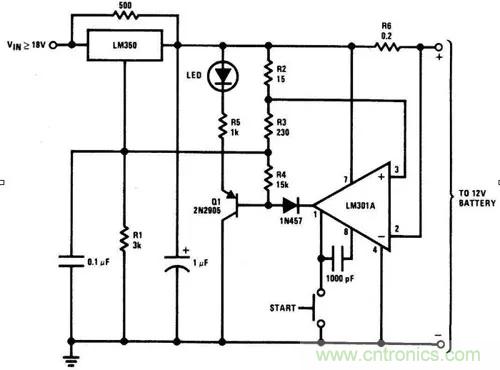 對于膠體電介質(zhì)鉛酸蓄電池來說,該電路是一個高性能的充電器。該充電器能夠迅速地為電池充電,且當(dāng)電池充滿時,它可迅速地斷開充電。最開始的充電電流限制在2A。隨著電池電流和電壓的增加,當(dāng)電流增加到150mA時,充電器就會調(diào)整至較低的漂浮電壓,以防止過度充電。