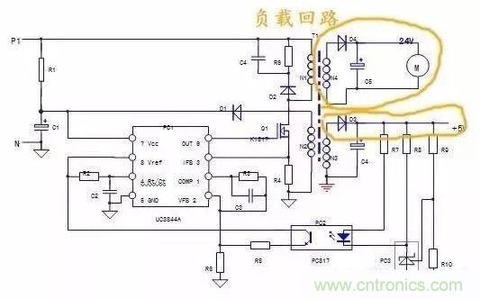 c.代換PC2,PC3無效,故障可能為開關管低效,或者UC3844內部輸出電路低效,代換優質開關管或者UC3844芯片。