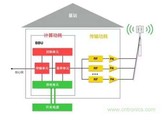據(jù)專業(yè)人士分析,部署初期,5G網(wǎng)絡主要采用CU和DU合設+AAU的設備方案,即在基站側(cè)采用BBU+AAU單元的建設模式。其中,BBU單元安裝在機房或室外機柜內(nèi),集成RRU和大規(guī)模天線陣列功能的AAU單元安裝在室外天面。由于5G采用MIMO技術(shù),BBU功耗將比現(xiàn)網(wǎng)4G系統(tǒng)的BBU功耗增加2倍,AAU功耗將比現(xiàn)網(wǎng)4G系統(tǒng)的AAU功耗增加2-3倍。