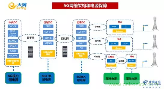 圖2 5G網(wǎng)絡架構(gòu)和電源保障(來源:中國電信)