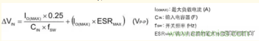 由此公式可知,如果輸入電容器變大時,輸入紋波電壓會變小。