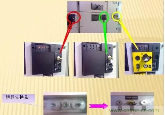 當需要斷開出線柜時,先將N電源柜、E電源柜停電,拔出KEY1、KEY2鑰匙,然后將鑰匙插入鎖具交換盒里,取出KEY3鑰匙插入出線柜聯鎖的鑰匙孔,方能操作出線柜。合出線柜的操作步驟則相反。