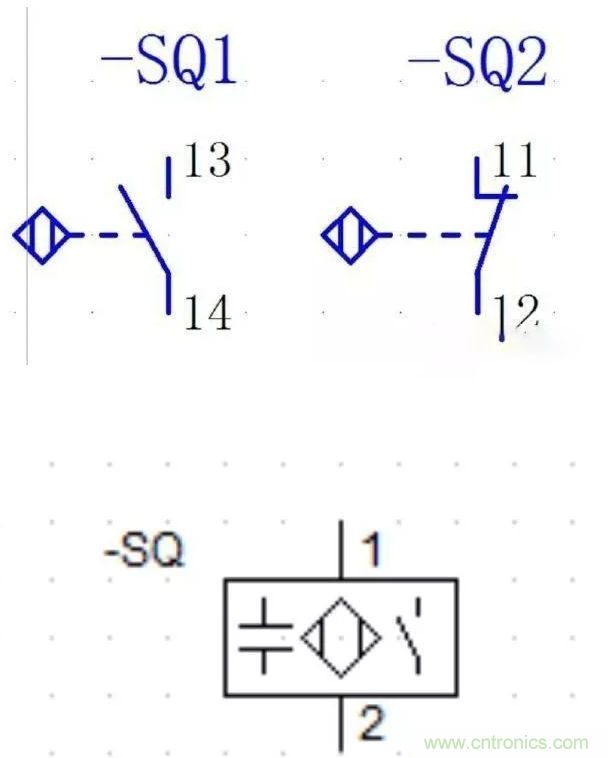 它有感應頭、高頻振蕩器、放大器和外殼組成。接近開關實物圖和圖形文字符號如下: