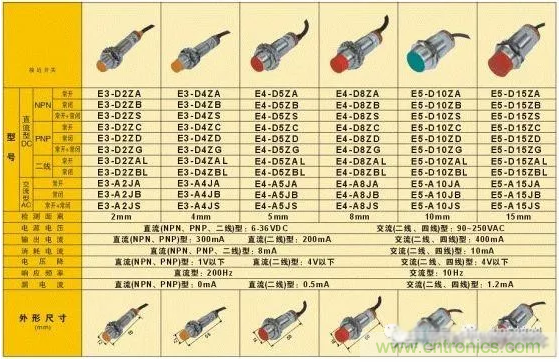 交流接近開關優選AC 220V和AC 36V;直流接近開關優選DC 12V和DC 24V。一般情況下,接近開關的電壓選擇范圍很廣。如下圖所示: