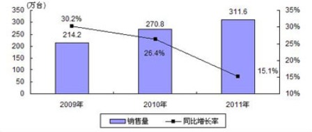 圖2 2009-2011年中國PND市場銷售量及增長預測