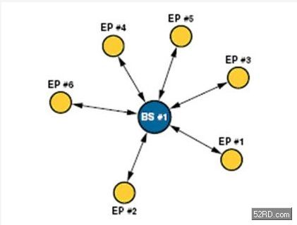 ADI目前正在更新其ADIismLINK(2.0版)協定軟體,這套軟體可適用于任何的ADF702x傳送接收器。此一針對全球次1-GHz頻帶使用而設計的協定,採用了新版的歐洲法令,并以圖5中所示的星狀網路(高達255個端點)為其基礎。