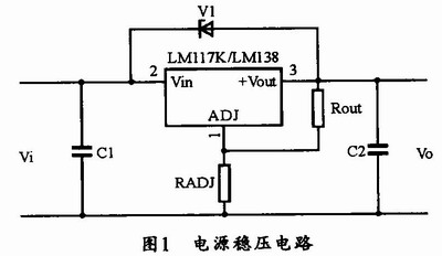 需要說明的是,圖1中的穩(wěn)壓器管腳電壓差Vo-Vi應(yīng)在3-35V范圍內(nèi),超出范圍將不穩(wěn)壓;LMll7K的額定電流為1.5A,LMl38K的額定電流為5A;這兩個(gè)器件的兩者管腳定義相同;為保證穩(wěn)壓器正常工作,設(shè)計(jì)時(shí)可選用0.25W電阻ROUT,其值可選120Ω~240Ω。