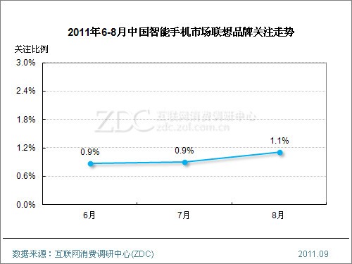 • 8月聯想品牌關注比例達到1.1%