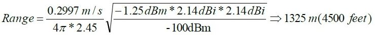 例如,如果使用弗里斯方程式計算一個2.45GHz 無線鏈路的最大通信距離,其發射功率為-1.25dBm,接收靈敏度為-100dBm 以及兩個天線增的益都是2.14dBi。需要注意的是,2.14dBi 是偶極天線的理論增益,而考慮損耗時一般達不到這一值。