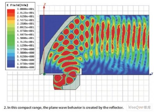 圖3:在緊縮測試場中由靜區(qū)上的反射面產(chǎn)生的平面波。