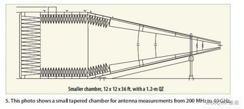 圖5:一個(gè)用于天線測試的200MHz至40GHz小型錐形暗室。