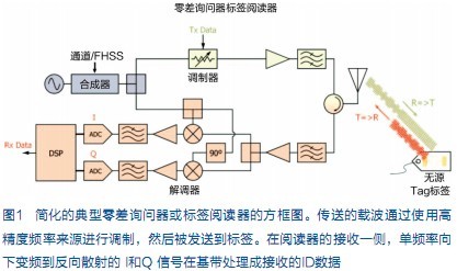 最簡單的RFID系統由一個標簽(可以是無源標簽)和一個閱讀器組成。從結構上看,無源標簽的讀取與傳統全雙工數據鏈路略有不同。與傳統有源數據鏈路不同的是,無源標簽依賴其收到的RF能量為自身供電。無源標簽同樣不會生成自己的傳送載波信號,而是調制詢問器發送到標簽的部分能量,這一過程稱為反向散射。
