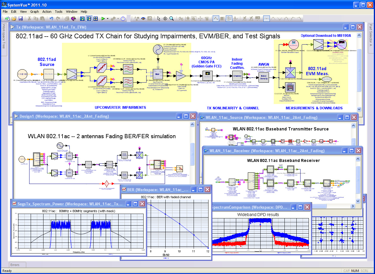 利用這個(gè)新程序庫,系統(tǒng)架構(gòu)師現(xiàn)在可以查看 802.11ac 算法和模型的系統(tǒng)級(jí)效率,信號(hào)質(zhì)量的預(yù)失真、減損、干擾和衰落,以及比特誤碼率。