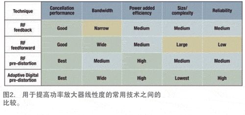 自適應DPD可以擴展寬頻帶射頻(RF)PA的直線性能(straight-line performance),而且遠遠超過正常擴展范圍。如前所述,當輸出功率增加時,輸出功率與理想線性性能曲線發生偏離。這正是PA放大輸出信號出現失真的地方,從而導致信號質量下降及干擾。DPD可將PA失真輸出信號與非失真輸入信號進行比較。然后,將輸出信號中一個與失真正好對立的信號添加至輸入,從而有效消除失真。由于DPD可擴展PA的線性范圍,因此將其稱為線性化技術(如圖4)。