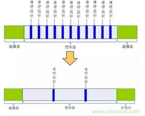 eDRX即非連續接收,是3GPP R13引入的新技術。R13之前已經有DRX技術,從字面上即可看出,eDRX是對原DRX技術的增強:支持的尋呼周期可以更長,從而達到節電目的。繼續借圖: