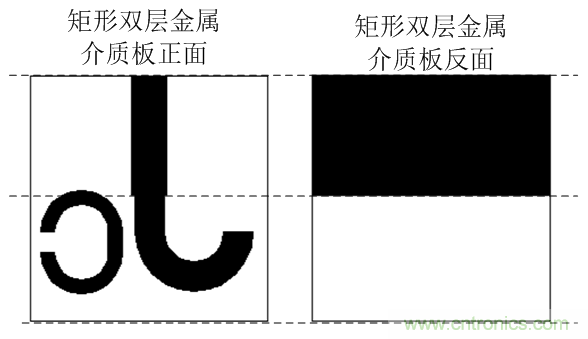 由上節分析可知,C形環探測信號的耦合度受制于耦合間距。在間距達到1mm的情況下,在10GHz才達到-19.45dB。為了增強耦合度,本節在C形環旁邊添加了與它相反的C形環,達到電磁耦合互補,增加耦合度的作用。其結構示意圖如下圖3所示。