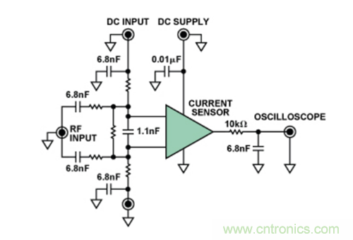 具體而言,這些測試都采用 “直接功率注入法”完成,這是一種通過電容將RF信號耦合至特定器件引腳的方法。根據待測IC的類型,針對不同的RF信號功率水平和頻率范圍,測試器件的每路輸入。圖4顯示了在特定引腳上執行直接功率注入測試的原理示意圖。