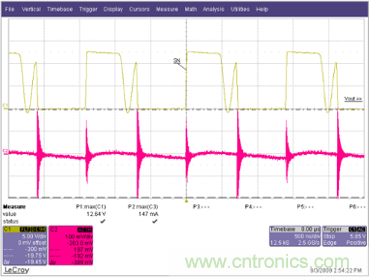 由于電容電荷的變化而導致的開關紋波(開關頻率)相比輸出開關的無阻尼振鈴而言非常小,下文稱為輸出噪聲。一般而言,此輸出噪聲范圍為10 MHz至100 MHz以上,遠超出大部分陶瓷輸出電容的自諧振頻率。因此,添加額外的電容對噪聲衰減的作用不大。