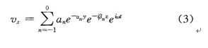 式中:c55,c56和c66表示基片材料的彈性剛度系數;ρ為基片材料的密度;Tiy和Tsiy(i=1,2,3)則分別表示柵陣和基片的應力;vx為質點振動速度。根據弗洛蓋定理(Floquet theorem),將方程的解vx表示為一系列空間諧波的疊加。在此只取0階和-1階,忽略其他階次。