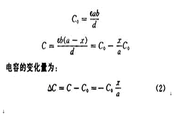 這時電容器的變化量ΔC才近似地和位移Δd成正比。其相對非線性誤差為: