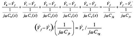 相應的信號源全部落在這些電容上,同樣,對傳感器的輸出信號無影響。如果給容柵傳感器每組發射極板上所加的發射電壓V1~V8為8路頻率、幅值相同而相鄰小極板間相位相差為π/4的正弦交變電壓,則在發射極上有電壓Vf,在接收極上有電壓Vr。應用交流電路理論及基爾霍夫電流定律,解讀圖l的等效電路,如下: