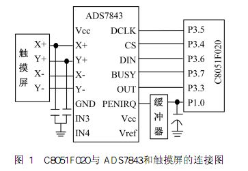 ADS7843是一種四線式觸摸屏控制器,目前較多應用于電阻式觸摸屏輸入系統中盡管有很多相關的典型應用和應用注意事項但是在實際使用過程中仍然會遇到一些問題應用在通用的單片機中所出現的問題及解決方法已有一些介紹本文是對基于高速、流水線結構的 C8051的觸摸屏控制系統設計中所遇到的問題進行分析處理并給出了解決方法