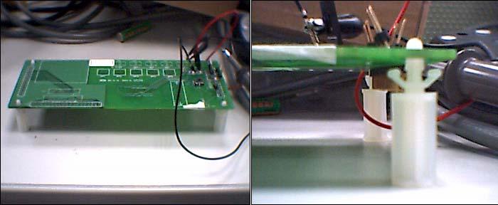 c.測試時必須特別注意電路板的放置,測試電路板不可以直接放在桌面上,也不可以在測試按壓時有晃動的現象,理想的測試環境是黏貼上面板或與面板相同厚度及材料的替代面板,再加上橡膠腳墊架高電路板,同時可以穩固電路板。