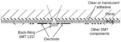 d.如果在感應電極中開孔加裝LED,必須加大感應電極以彌補開孔所損失的面積,所以增加的感應電極面積至少必須相等於開孔的面積。