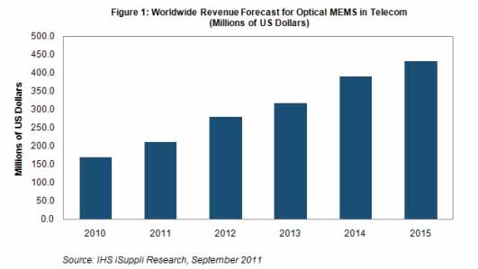 - 2011年光MEMS銷售額達2.118億美元,增長24.7%