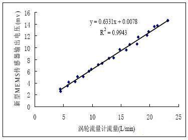 新型MEMS傳感器的標定是通過渦輪流量計來實現(xiàn)的。采用串聯(lián)在系統(tǒng)中的CLG15耐高壓渦輪流量計(名義精度為0.5%)和SO64C-1型流量測試儀進行標定。