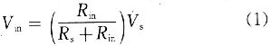 高阻抗信號測量,易受到測量系統(tǒng)輸入阻抗的分壓與系統(tǒng)輸入偏置電流的影響。如圖1所示,將被測高阻抗信號源與測量系統(tǒng)相連,信號源的戴維寧等效電路由Vs與Rs串聯(lián)而成。假定測量系統(tǒng)的等效輸入電阻為Rin,輸入端電壓為Vin,由于Rs與Rin的分壓,使得輸入端電壓減小,測量系統(tǒng)的輸人端電壓為:
