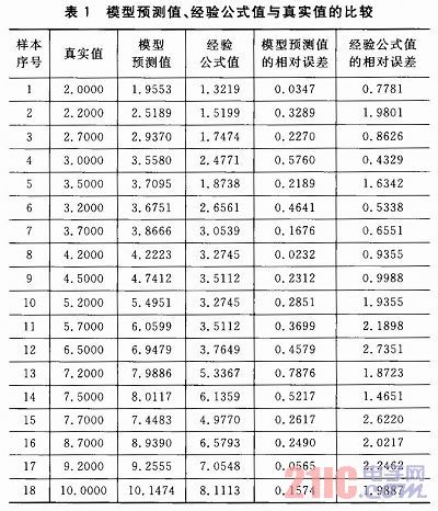 為了驗證測試結果的可靠性,根據網絡訓練的結果,把測試結果與真實值進行對比。為了突出該方法的優越性,與經驗公式計算出來的距離值進行比較。表1為模型預測值、經驗公式值與真實值的比較。