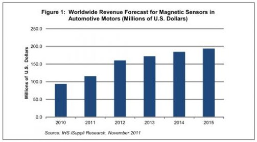 據(jù)IHS iSuppli公司的磁傳感器專題報(bào)告,由于能夠改善汽車安全性、便利性和燃油效率,硅磁傳感器在汽車電機(jī)中的應(yīng)用將快速增長,該市場的銷售額將在2012年增長近40%。
