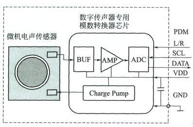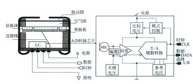 圖2數(shù)字傳聲器結(jié)構(gòu)及模數(shù)轉(zhuǎn)換芯片原理圖