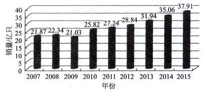 圖10 2007 - 2015年全球微型駐極體傳聲器銷量發(fā)展趨勢(2011年后為預(yù)測)