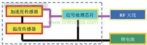 新一代DTPMS將MEMS的加速度傳感器和溫度傳感器與信號處理電路集成在一塊芯片中。傳感器模塊的構(gòu)成部件有集成MEMS傳感器和信號處理電路的胎壓監(jiān)測器芯片、電池以及向本車駕駛臺傳輸計測結(jié)果的天線這三個部分,如圖1所示。由此使得內(nèi)置傳感器模塊的重量大大降低,先前安裝在輪胎氣門嘴上的已有傳感器模塊重量原為1個37g,而新一代DTPMS粘貼在輪胎上的模塊重量僅為11g。其電池壽命可達到與輪胎一樣的6年。