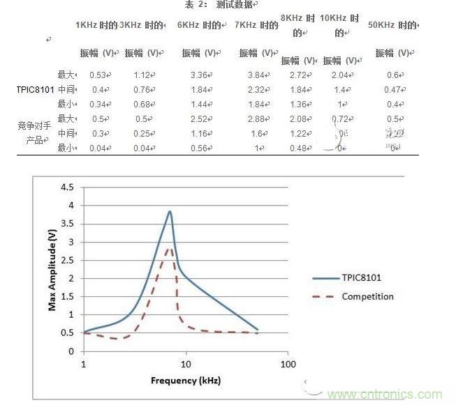圖 2:測試結果–與競爭產品的振幅比較(相對于頻率)