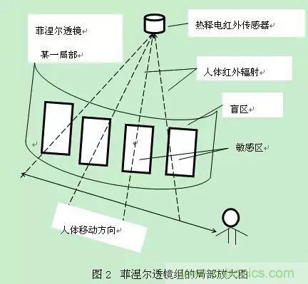 一旦入侵人進(jìn)入探測區(qū)域內(nèi),人體紅外輻射通過部分鏡而聚焦,從而被熱釋電元接收,但是兩片熱釋電元接收到的熱量不同,熱釋電也不同,不能抵消,經(jīng)信號處理而報警。
