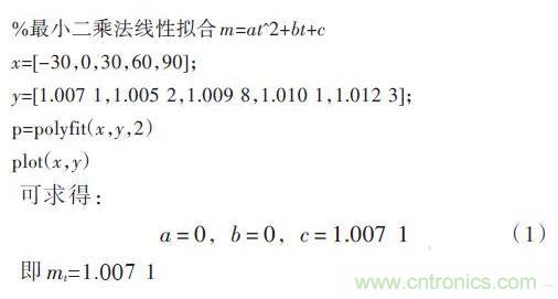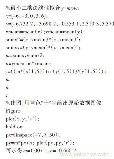 由于按照最小二乘法的基本步驟進(jìn)行擬合的計(jì)算量比較大,所以本文采用Matlab進(jìn)行數(shù)據(jù)處理,這樣不但可以減少復(fù)雜的計(jì)算過程,而且還可以保證較高的計(jì)算精度。